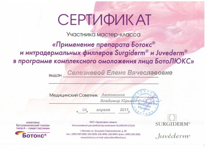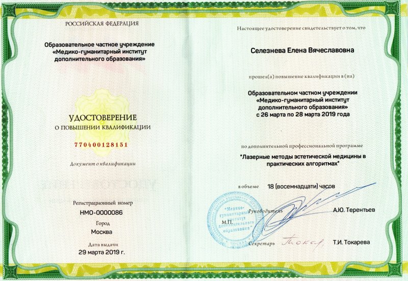 Владеет всеми методами аппаратной косметологии ( лазеротерапией , фототерапией , Элос-терапией , термрлифтингом , ультразвуковыми и др) и инъекционными методиками ( Ботокс , Диспорт , Релатокс , Ксеомин , контурная пластика , канюльными техниками (софтлифтинг , софтфилинг) , мезотерапия, озонотерапия, карбокситерапия.