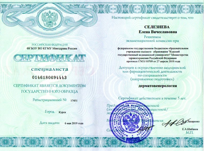 муж Селезнев Вячеслав Геннадьевич - врач дерматовенеролог , косметолог